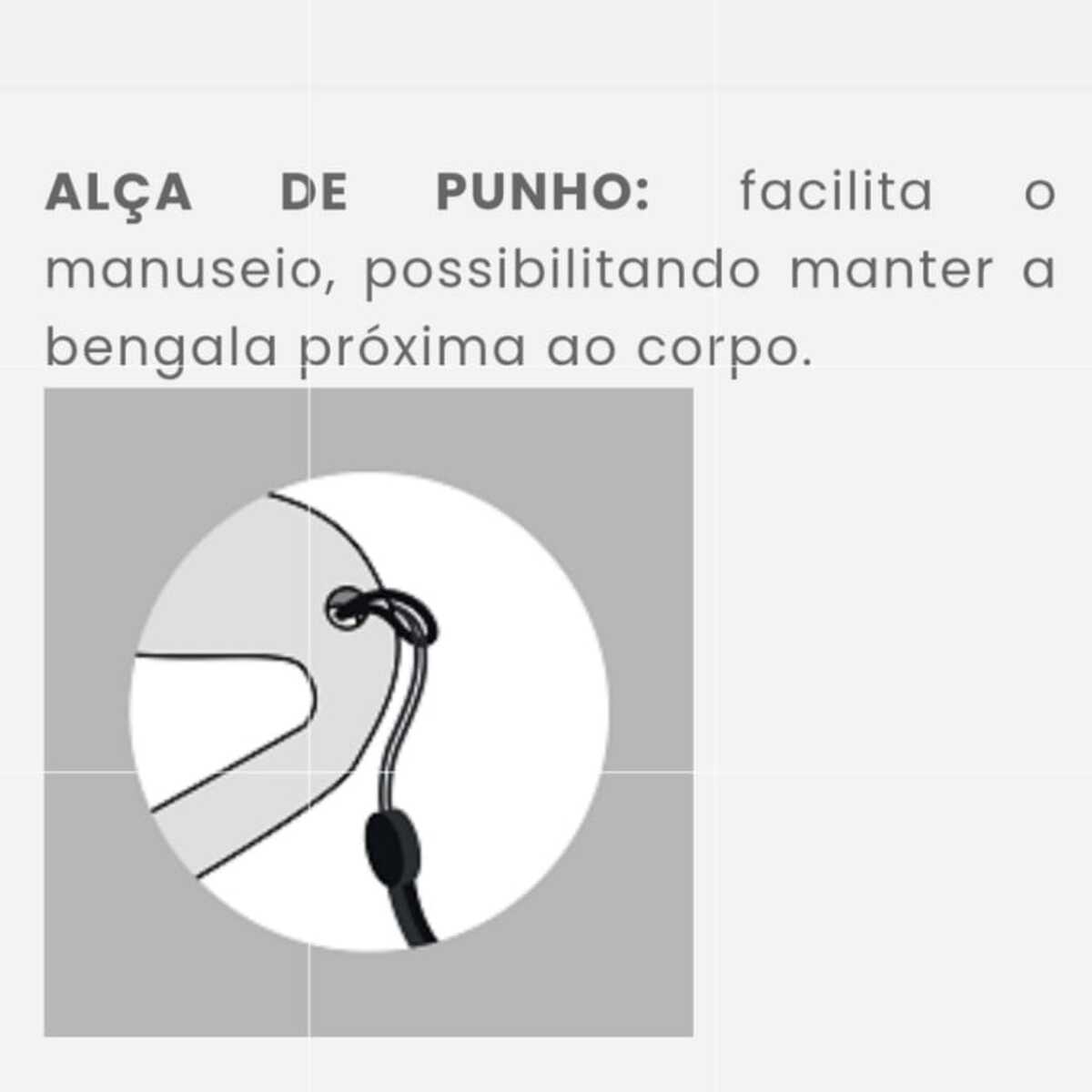 A Bengala Fixa foi desenvolvida para auxiliar pessoas com mobilidade reduzida, proporcionando apoio e estabilidade para prevenir quedas durante a caminhada. O recurso é resistente, leve e possui apoio de mão com cantos arredondados e design ergonômico, que contribui para melhor distribuição da pressão palmar e proporciona conforto durante o uso. O dispositivo conta com 10 níveis de ajuste de altura, alça para punho e suporte para apoiar pequenos objetos. A bengala contém ponteira flexível com sinalizador de desgaste e ranhuras que reduzem o risco de deslize em pisos com acúmulo de líquido, o que oferece uma passada mais natural e segura ao caminhar.