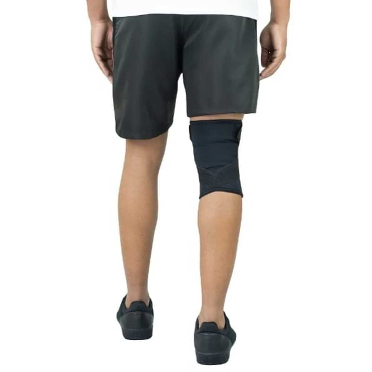Proporciona estabilização na região do joelho, auxiliando na prevenção e recuperação de lesões. Possui cintas elásticas cruzadas que oferecem maior compressão e estabilização da articulação. Fabricada em Neoprene na região anterior, que contribui com o aquecimento do joelho para o alivio da dor, e em tecido transpirável na região posterior, que permite a absorção do suor, proporcionando maior conforto durante o uso. Bilateral, pode ser usada no lado direito quanto no esquerdo.