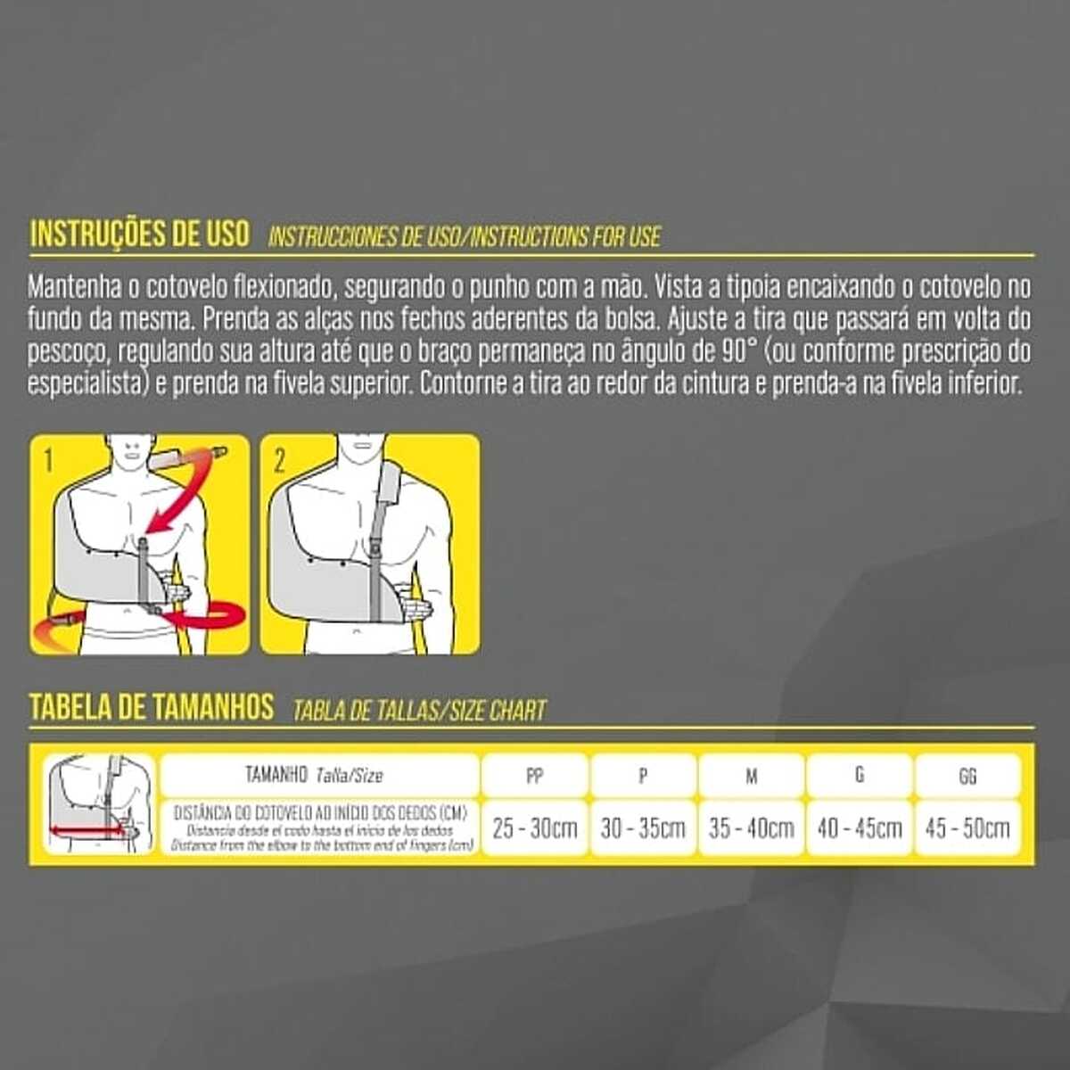 Imobilização do membro superior (ombro, braço e antebraço), fratura do colo do úmero, contusões, luxações, bursites e sequelas de AVC. Também utilizada em pós-operatório e apoio para gesso.