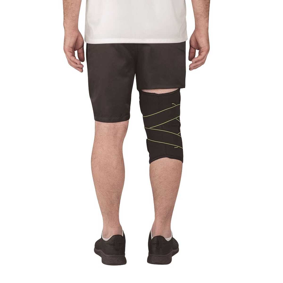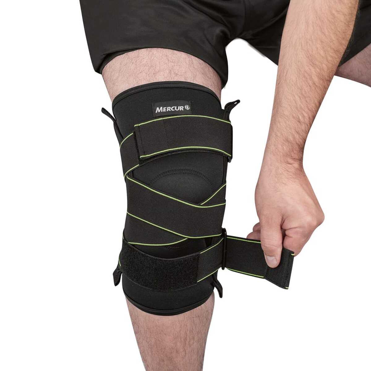 A joelheira foi desenvolvida para auxiliar na prevenção e recuperação de lesões na região do joelho, proporcionando estabilização da articulação. Possui dobradiças metálicas com trava, que oferecem reforço extra evitando a hiperextensão e os movimentos de lateralização. Se invertidas, as dobradiças imobilizam o joelho, evitando o movimento de flexão. Conta ainda com cintas elásticas cruzadas que oferecem maior compressão e estabilização, além de estofamento reforçado na região anterior, que aumenta a área de contato da patela no joelho, reduzindo a dor e proporcionando maior conforto, Confeccionada em Neoprene, quem mantem a região aquecida, é ajustável e bilateral, podendo ser utilizada tanto no joelho direito quanto no esquerdo.
