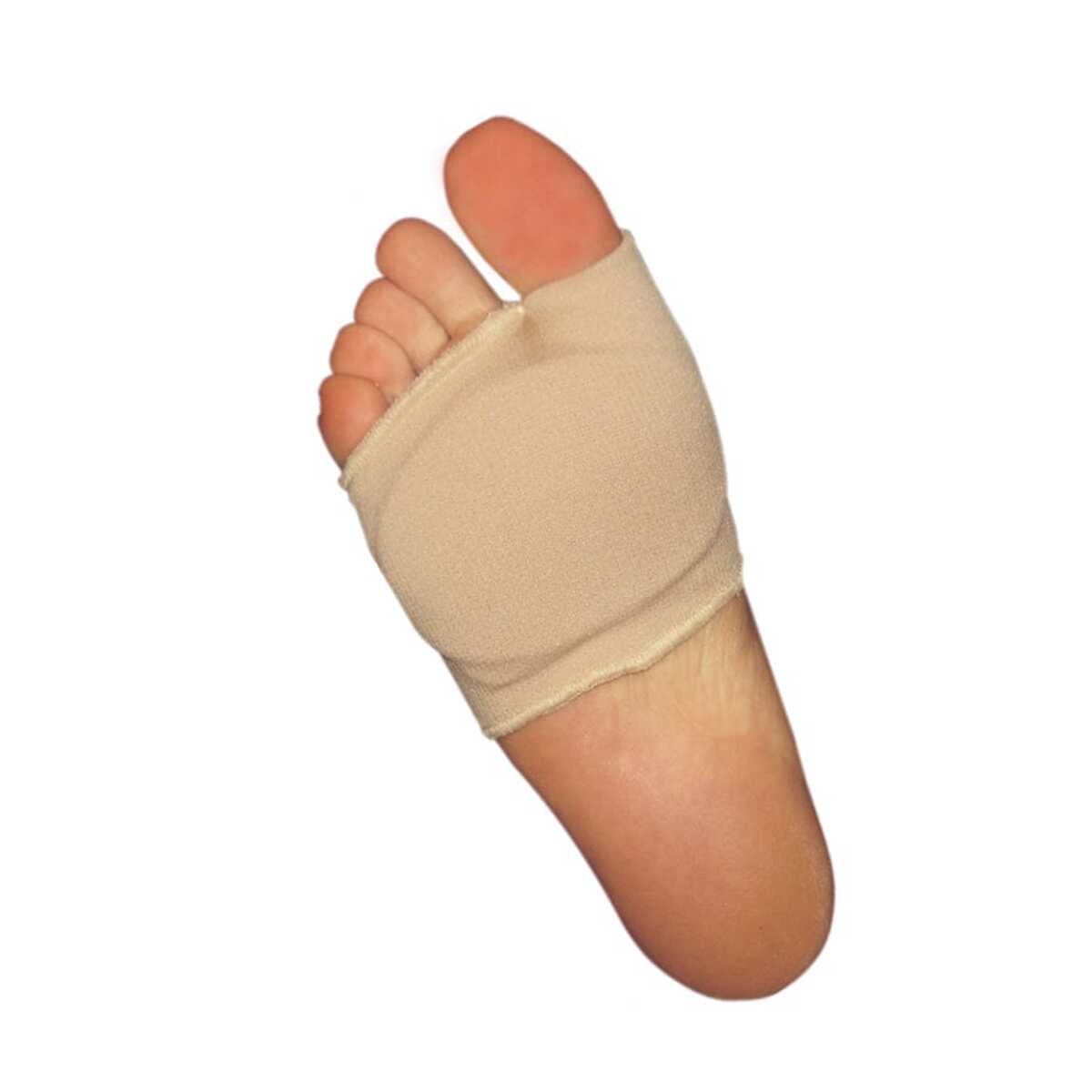 Indicação: Metatarsalgia, calosidade, fascite plantar, eliminação do desconforto, dores plantares e dorsais, patologias do ante pé, queda de metatarsos, ruptura da pressão e atrito. Promove conforto, proteção e alívio das dores nos metatarsos. Possuem costura para união das duas faces da malha, permitindo um encaixe confortável e anatômico no dedo maior. A almofada interna de gel abrange toda região metatarsal proporcionando maior conforto e proteção aos pés, adaptável em calçado aberto ou interno, não escorrega nem sai da posição original.