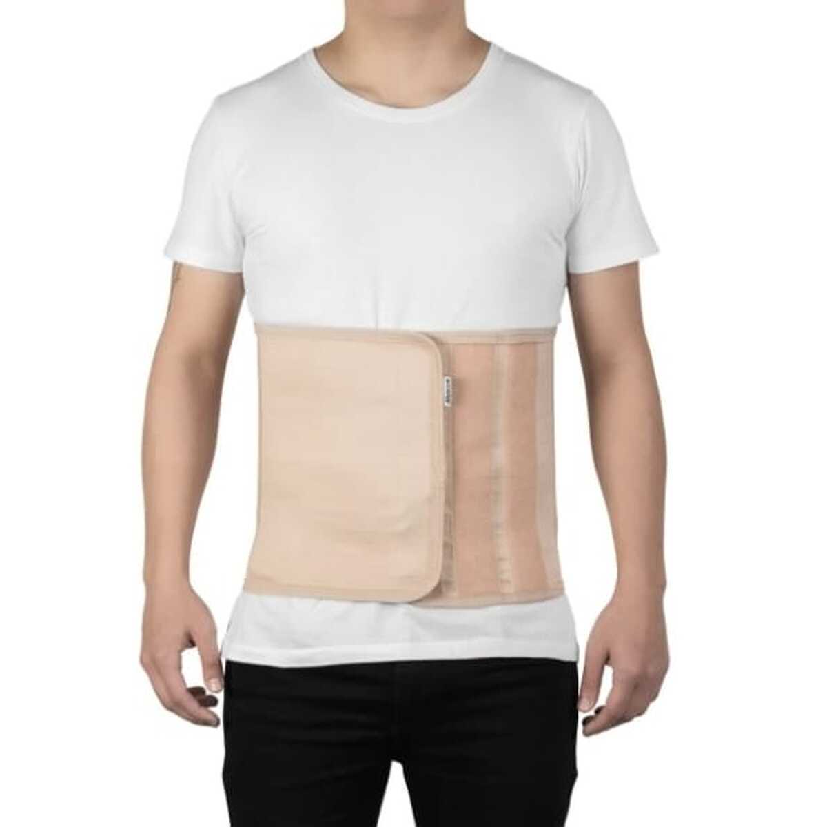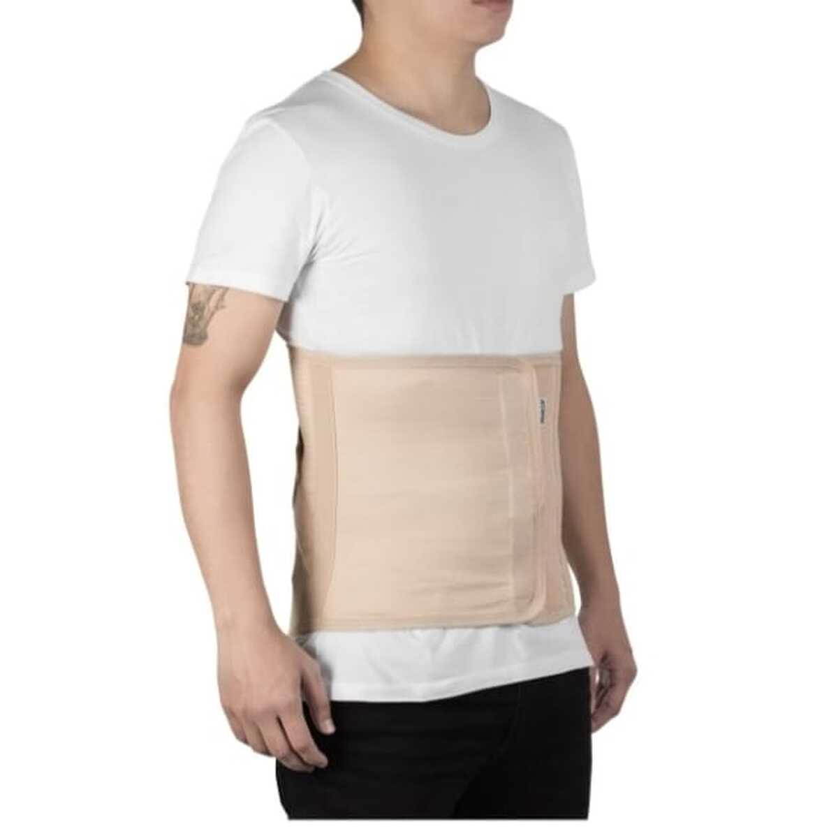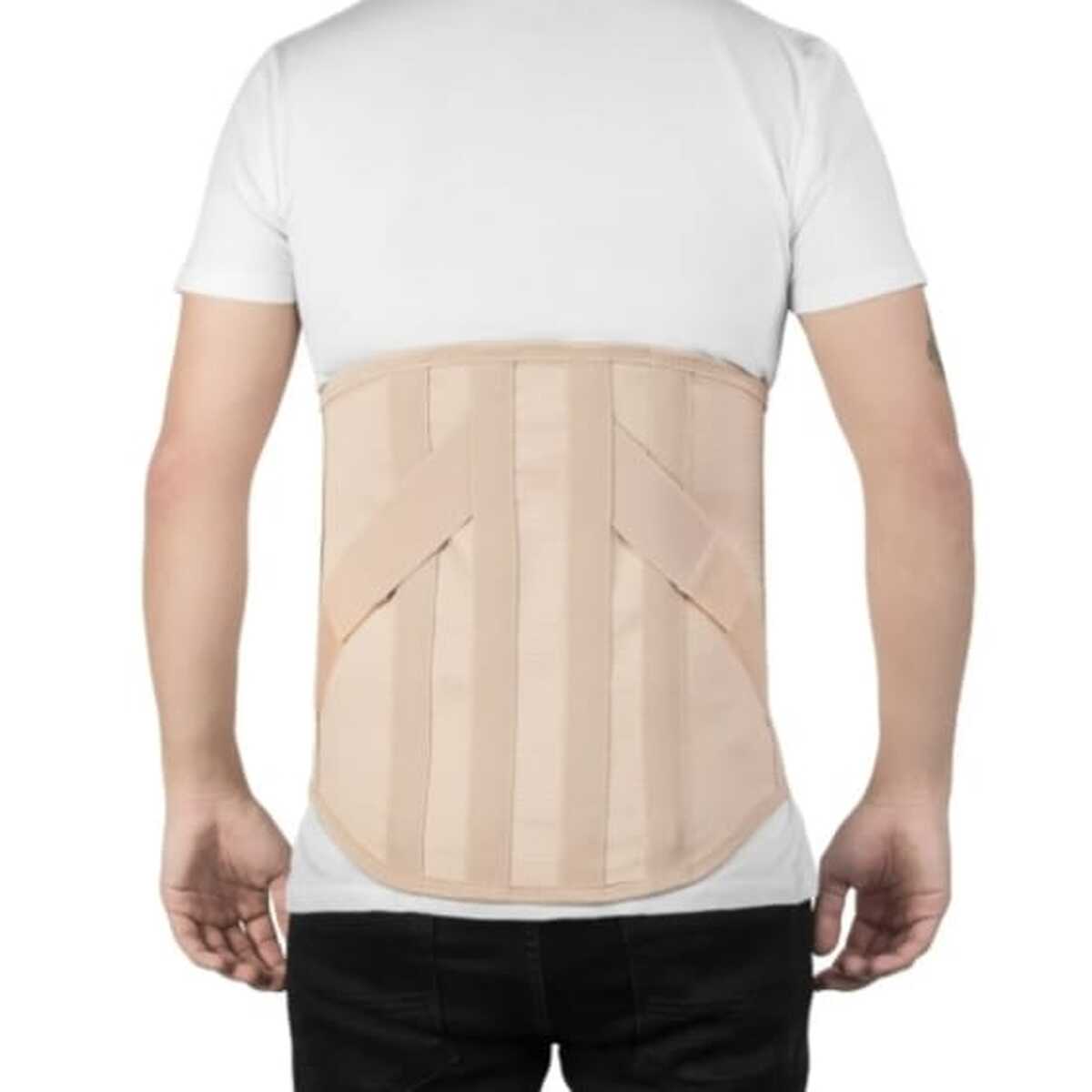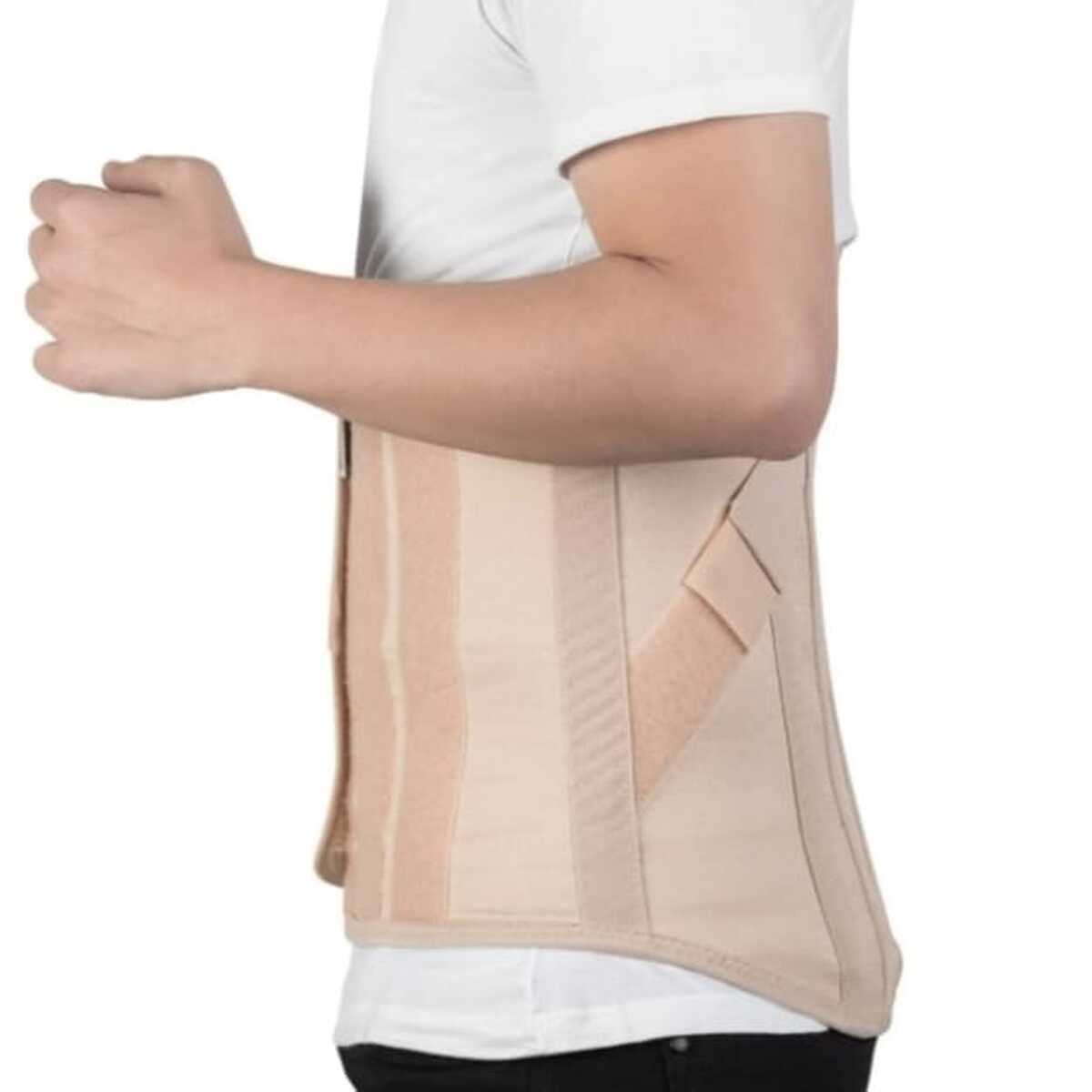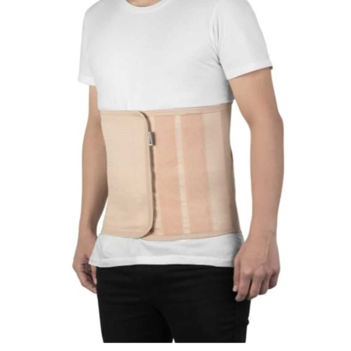 Confeccionado em elástico resistente é ajustável por fechos aderentes e possui reforço lateral, indicado para a região dorso-lombossacral. O modelo reto permite uma restrição maior do quadril e a adaptação a diferentes anatomias corporais.