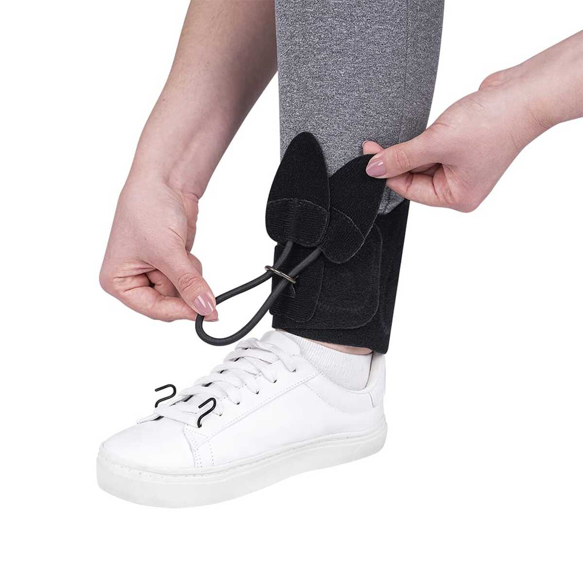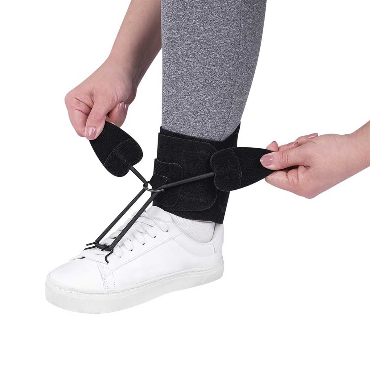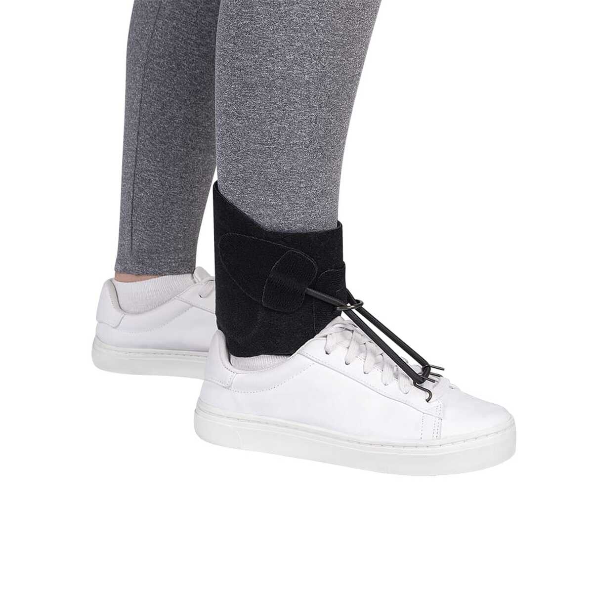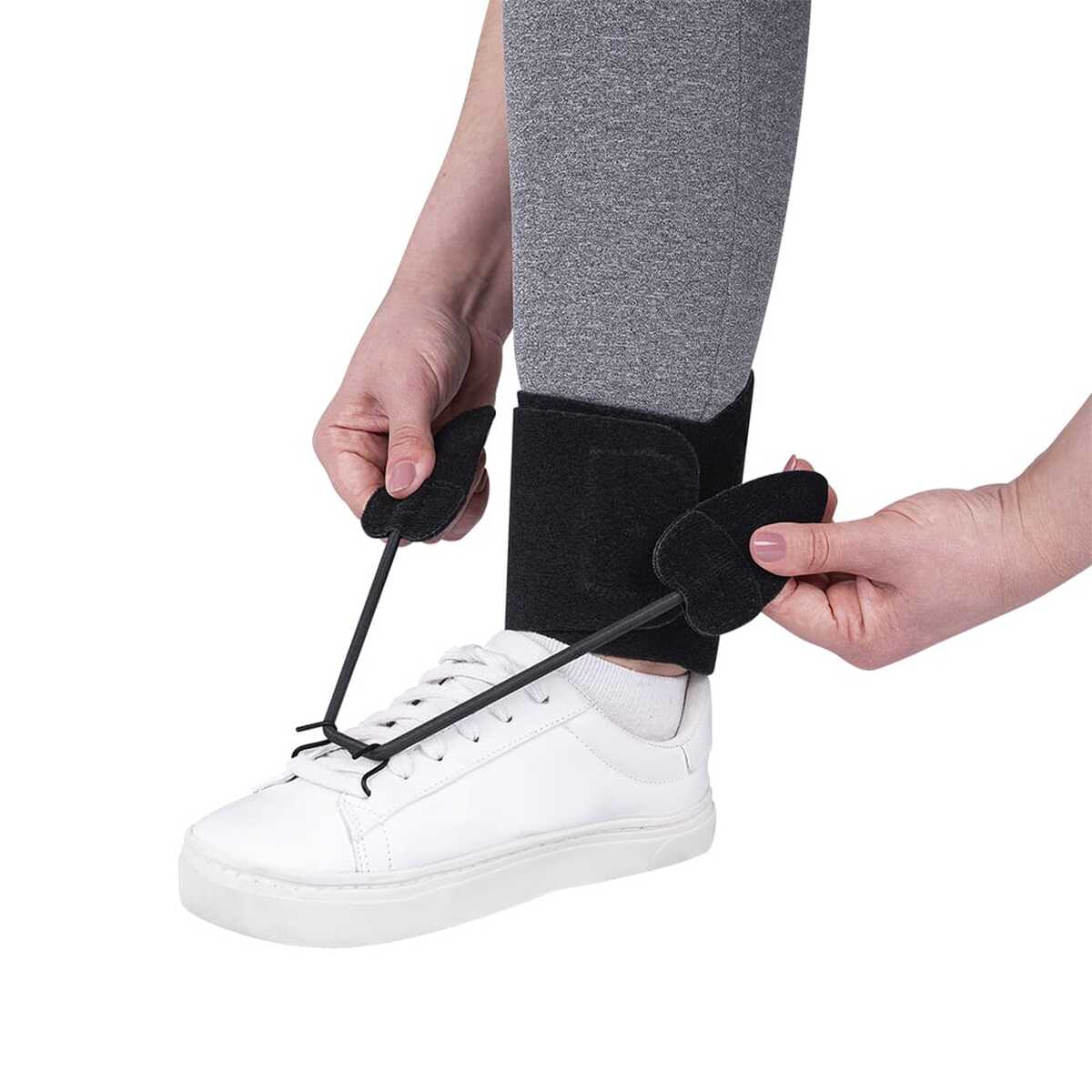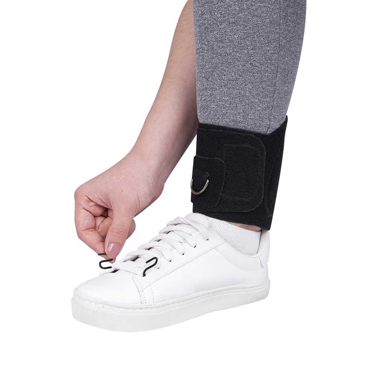 Foi feito para auxiliar pessoas com pé equino (pé caído), um condição comum após lesões neurológicas ou ortopédicas. Possui um elástico ajustável que auxilia na elevação da ponta do pé (dorsiflexão), contribuindo para uma marcha mais funcional. É fácil de ajustar, confortável de usar e é bilateral: serve para ambos os pés. Vem com acessórios que permitem até 4 formas diferentes de uso, dependendo do tipo de calcado e do nível de suporte necessário.