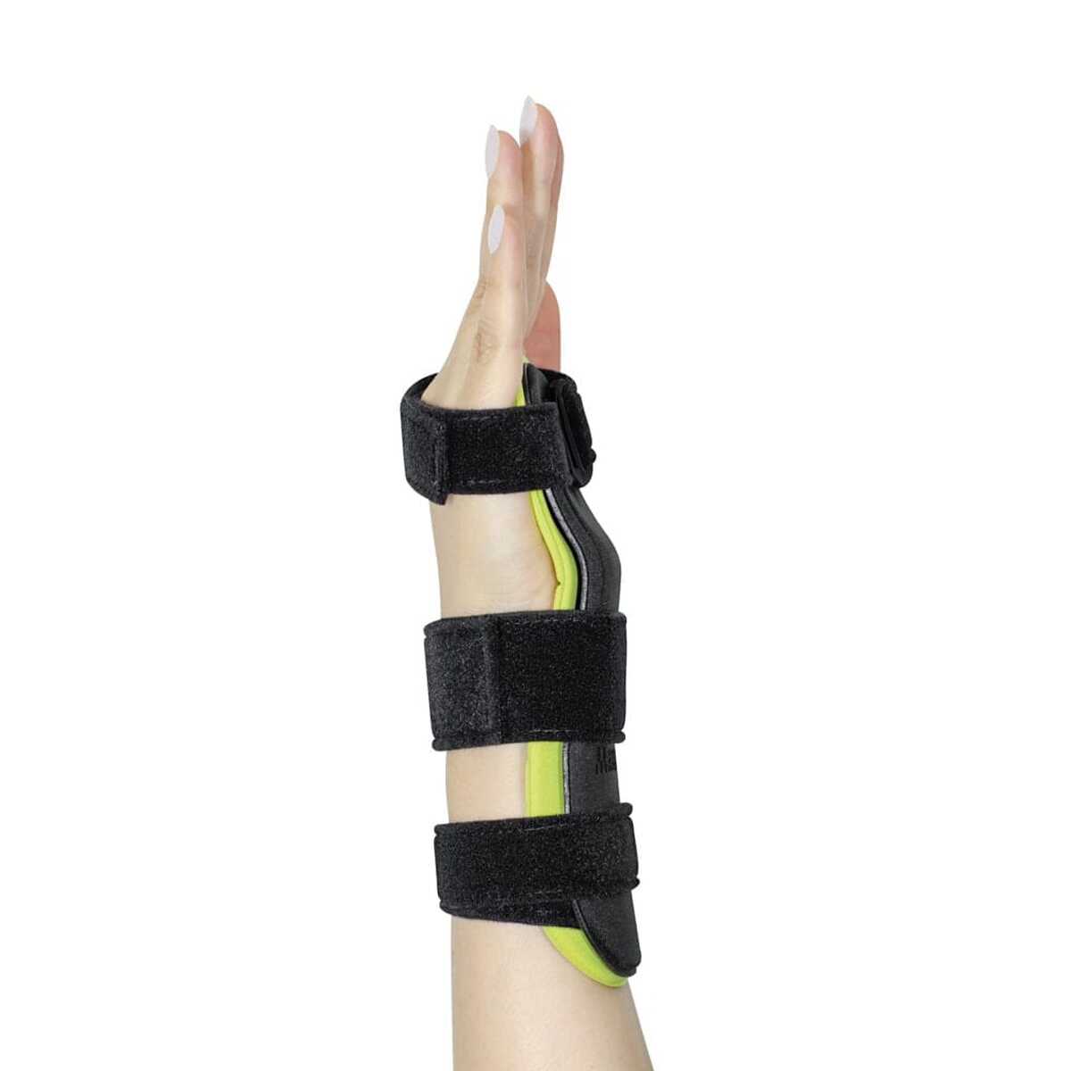 A tala auxilia no tratamento de lesões na região da mão, punho e antebraço. O recurso possui design ergonômico e exclusivo, que reduz a percepção de calor do usuário sem comprometer a estabilização da articulação. Possui tala anatômica, desenvolvida a partir de material reciclado, que promove maior estabilidade e restringe os movimentos do punho. O revestimento interno é confeccionado em material macio para maior conforto. Possui sistema de fixação ajustável em tiras, que permite graduar a compressão conforme a necessidade. É bilateral, podendo ser usada tanto no lado esquerdo quanto no direito.
